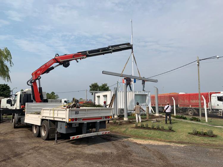 Grúa con 4 extensiones hidráulicas y 3 prolongas manuales.